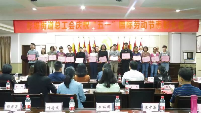 慶祝五一國際勞動節表彰大會 4月24日下午,彭埠街道總工會在街道五樓會議室召開慶祝五一國際勞動節表彰大會,區總工會副主席羅晴軍應邀參加會議,街道黨工委副書記周曄,街道總工會主席王獻民、副主席陳霞、各常委及轄區所屬各社區、企業工會主席、工會干部、工會工作者、優秀職工代表等100余人參加會議。