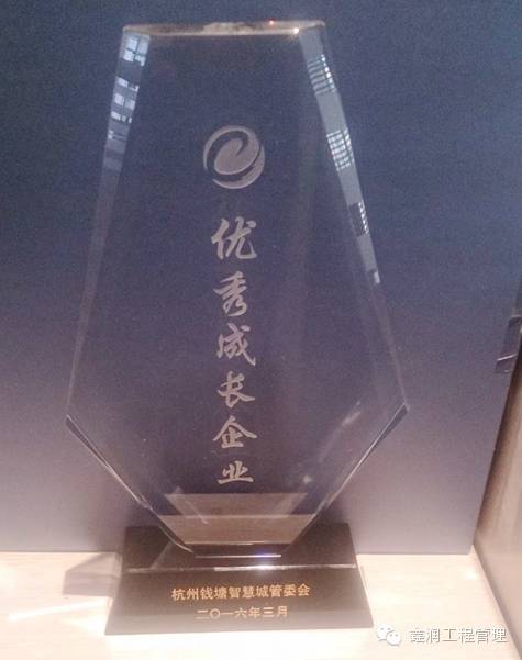 2016年3月16日,浙江鑫潤榮獲杭州錢塘智慧城管委會頒發的“2015年度優秀成長企業”榮譽稱號。