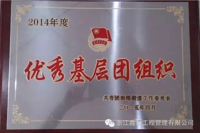 近日,浙江鑫潤工程管理有限公司團支部被彭埠鎮街道工作委員會授予“2014年優秀基層團組織”的稱號。