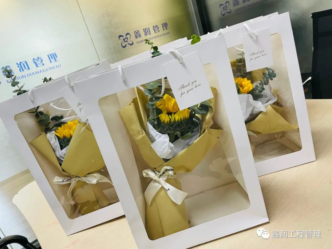 為迎接國(guó)際“三八”婦女節(jié),豐富女性職工的精神文化生活,促進(jìn)婦女同胞的身心健康,3月8日,浙江鑫潤(rùn)工程管理有限公司開(kāi)展了“美麗半邊天,溫暖婦女節(jié)”的贈(zèng)花及觀影活動(dòng)。